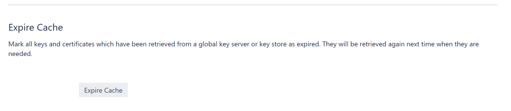 If you change the key store location or key server url, this also expires the cache, so after that, all certificates and keys will be retrieved from the new key store or key server.